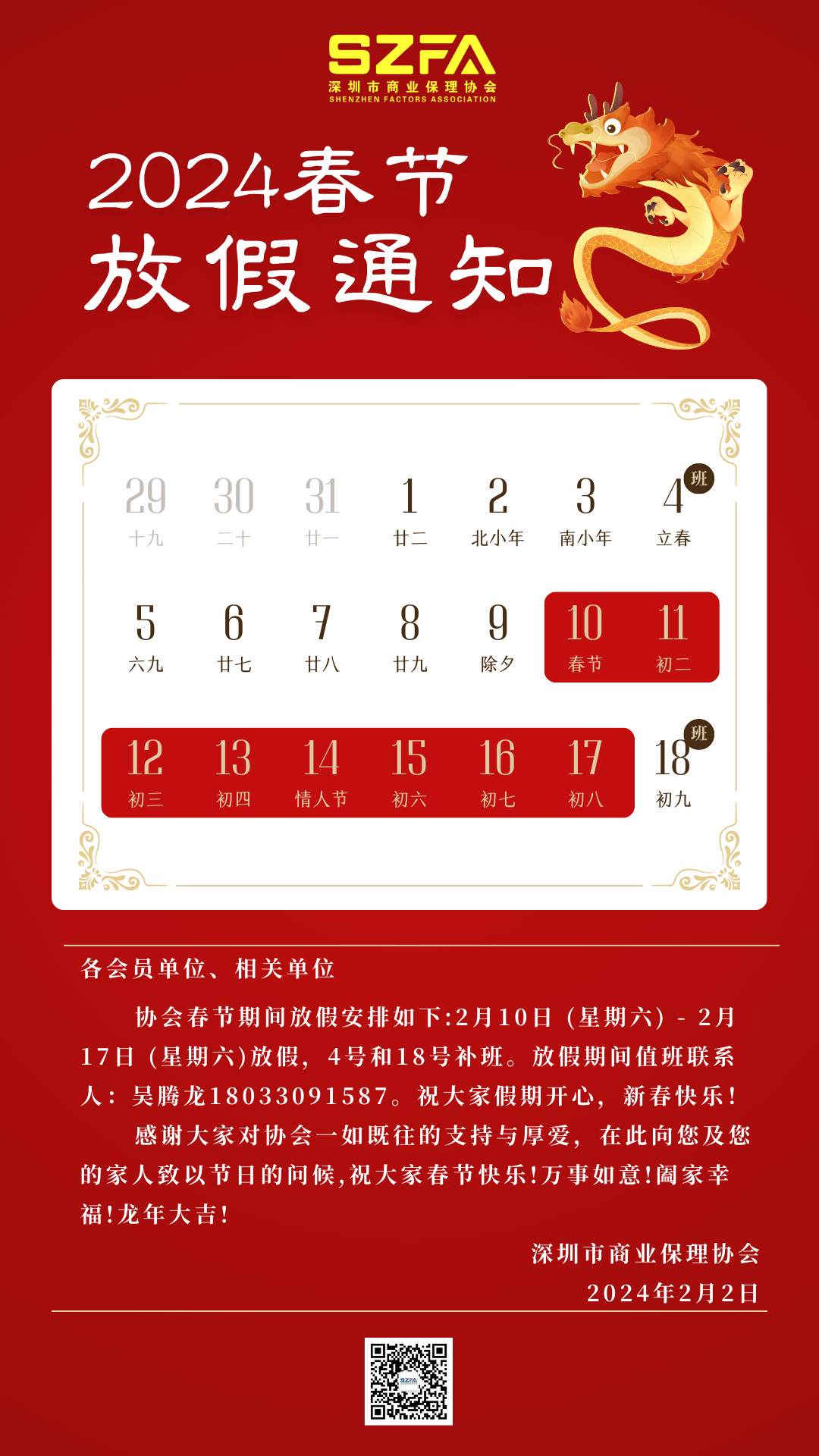 摘要:最新2024年春節(jié)放假通知已經發(fā)布,科技重塑假期體驗,帶來前所未有的春節(jié)時光。此次假期安排充滿創(chuàng)新,為公眾帶來全新的節(jié)日感受。具體安排細節(jié)尚未透露,但預計將充分利用科技手段提升人們的節(jié)日體驗,讓春節(jié)更加精彩紛呈。期待即將到來的春節(jié),共同感受科技與文化的融合帶來的美好時光。