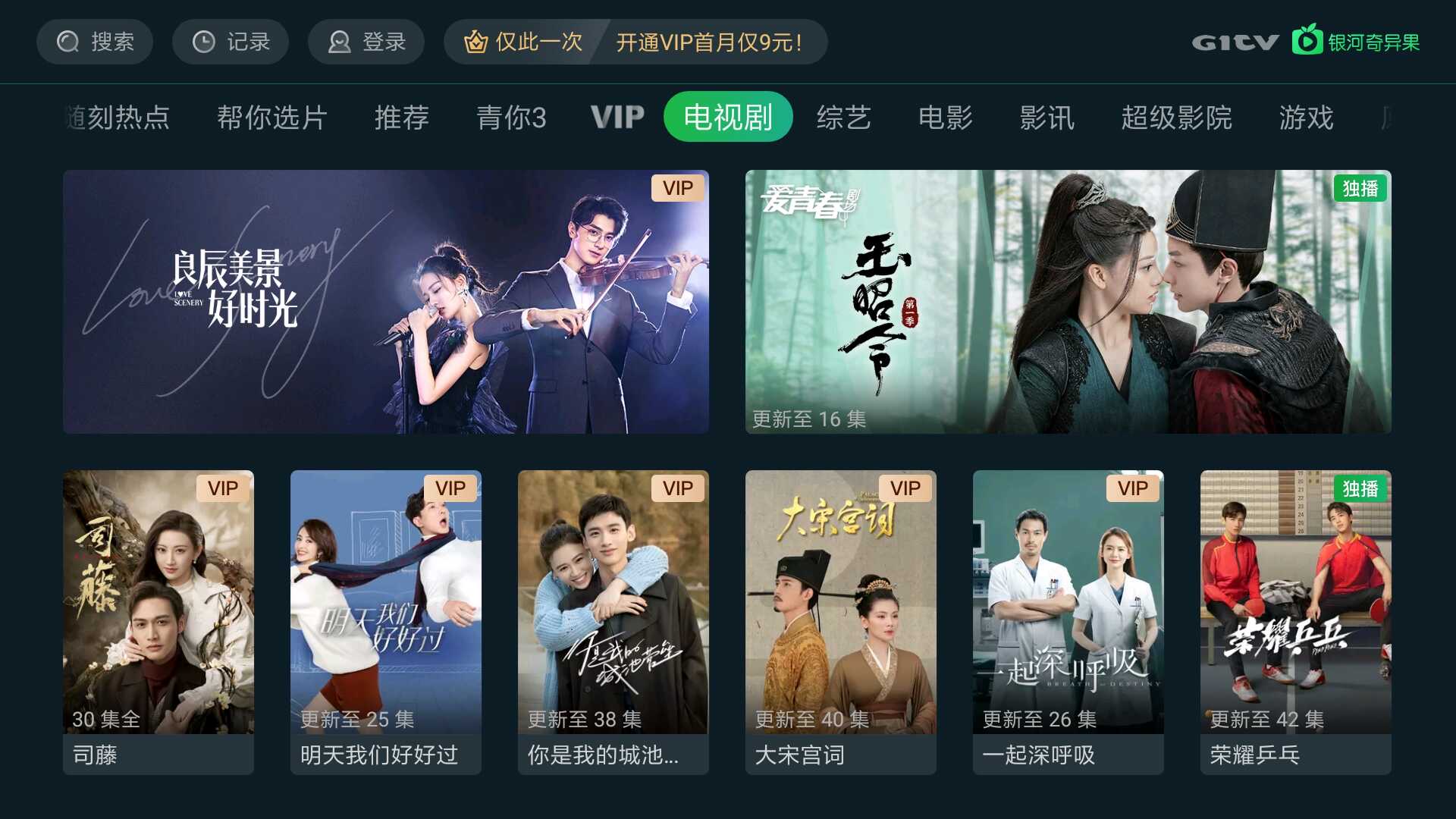 1、登錄愛奇藝賬號后,在首頁的菜單欄中選擇“電視劇”選項。